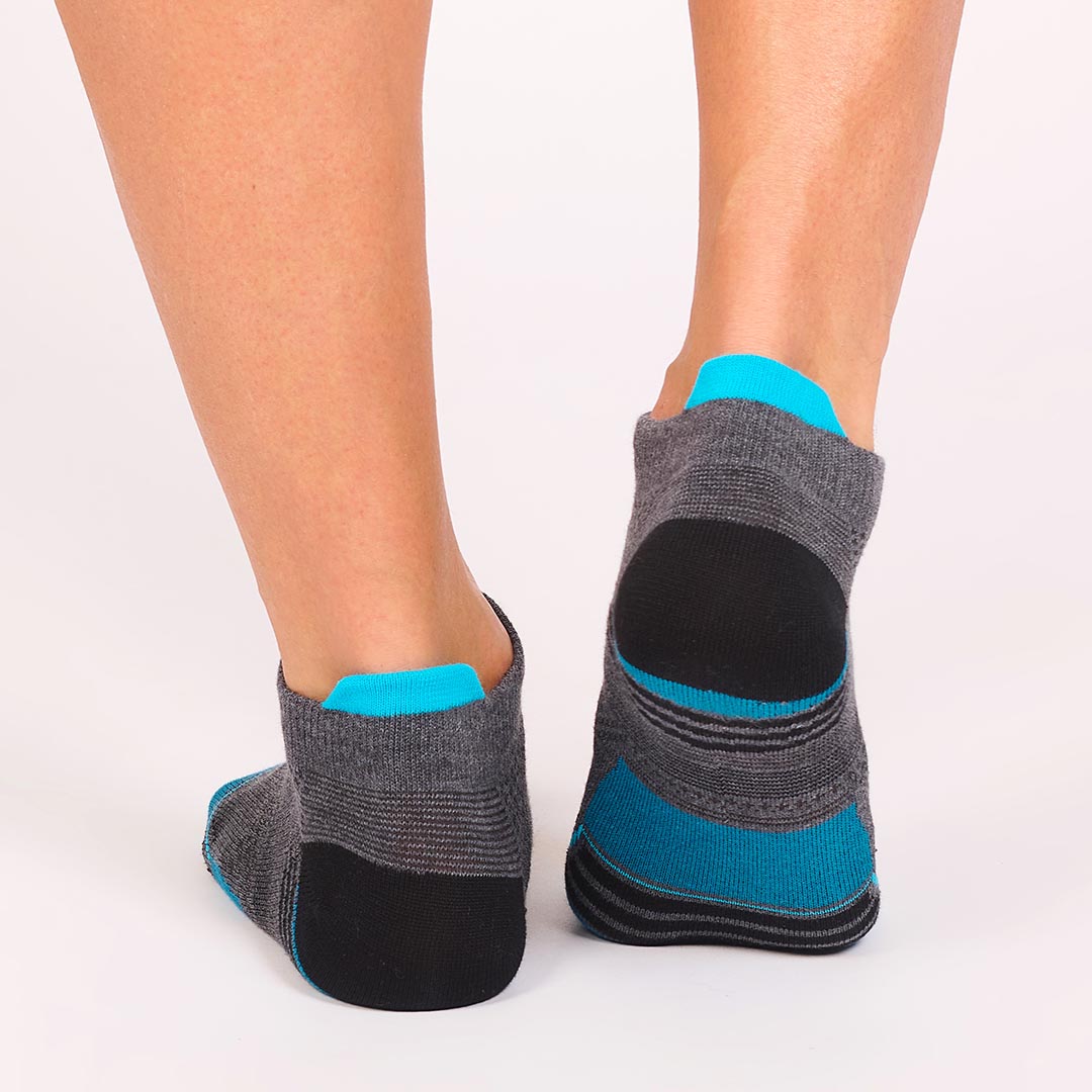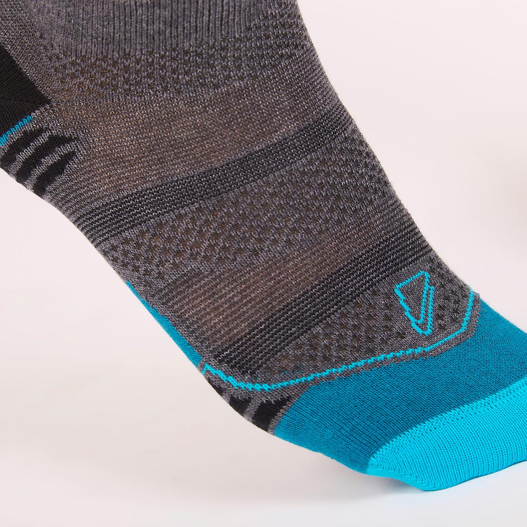 Se ajusta a los contornos del pie. Hecha de algodón y lycra. Lengüeta anti roce. Plantilla reforzada.