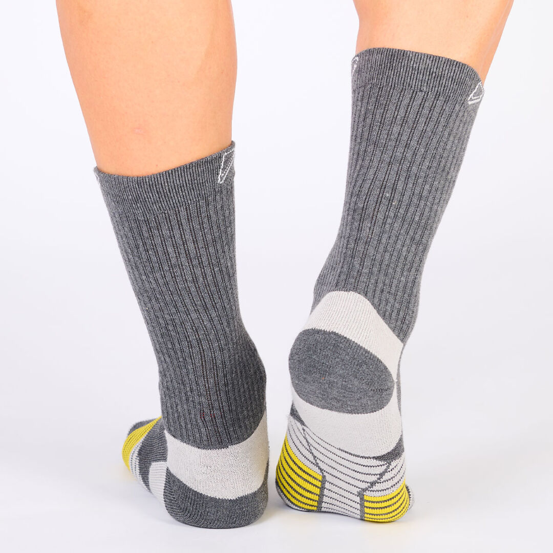 De algodón con caña elastizada de ajuste suave. Plantilla con toalla de alta resistencia. Aireación en empeine.