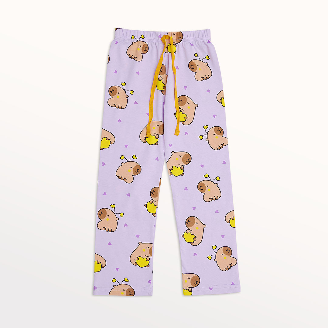 Un desayuno de sonrisas con tu mejor amiga 🦫💜. Pijama largo de algodón con diseño de capibaras y donuts para aquellas que sueñan con mañanas dulces y abrazos suaves. 🍩✨